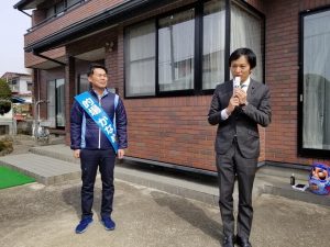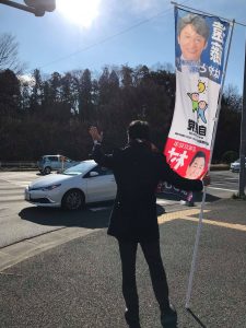 本日は快晴の長命ヶ丘からスタート。その後本日から始まる川崎町議会議員選挙で自由民主党公認、青年局の先輩である的場かなめ候補の応援に伺いました。